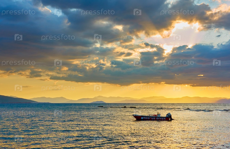 Море с лодкой на закате