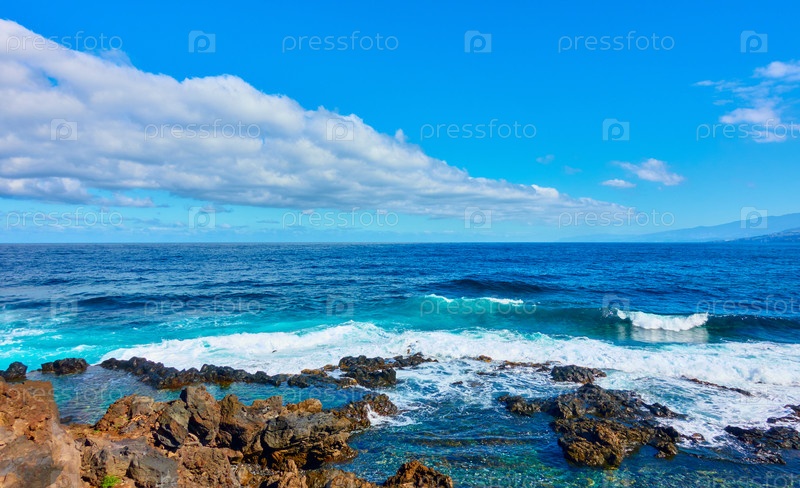 Атлантический океан и скалистое побережье острова Тенерифе,