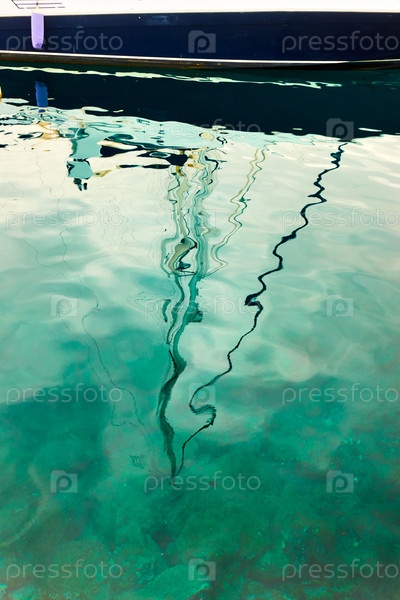 Водная поверхность с отражением яхты
