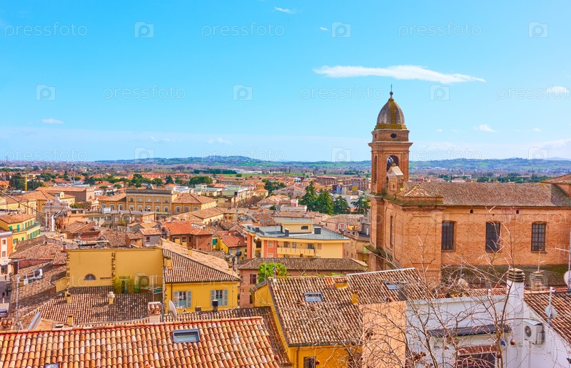 Панорамный вид на небольшой итальянский город Сантарканджело-ди-Романья