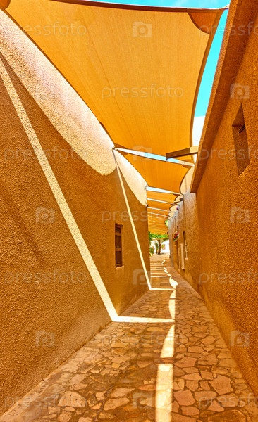 Традиционная арабская улица с тканевыми тентами в Дубае