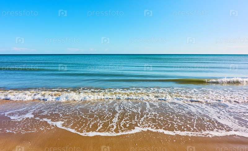 Море с песчаным пляжем и ясным голубым небом