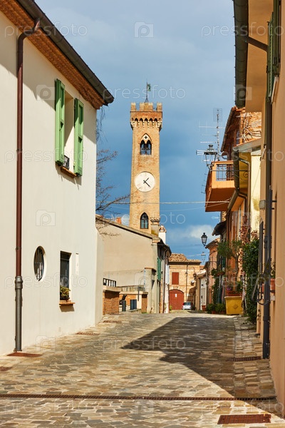 Улица с колокольней в Сантарканджело ди Романья