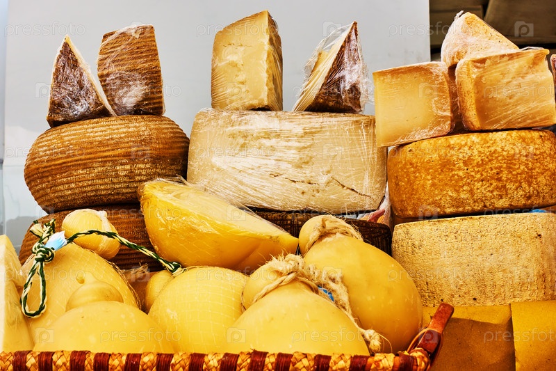 Различные сорта сыра на рынке