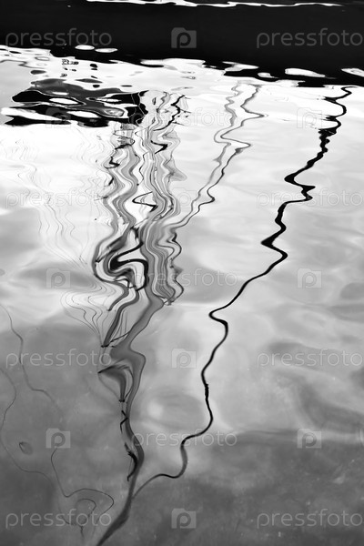 Водное отражение парусной яхты с мачтой и снасти