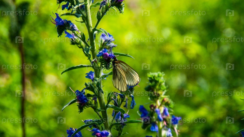 Часть соцветия синяка обыкновенного с кормящейся бабочкой-толстоголовкой