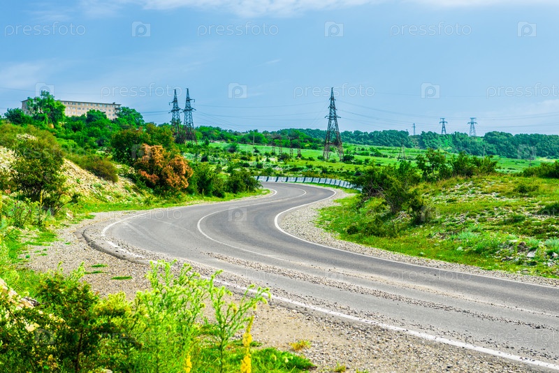 Извилистая асфальтовая дорога в горах Северного Кавказа Дагестана. Россия
