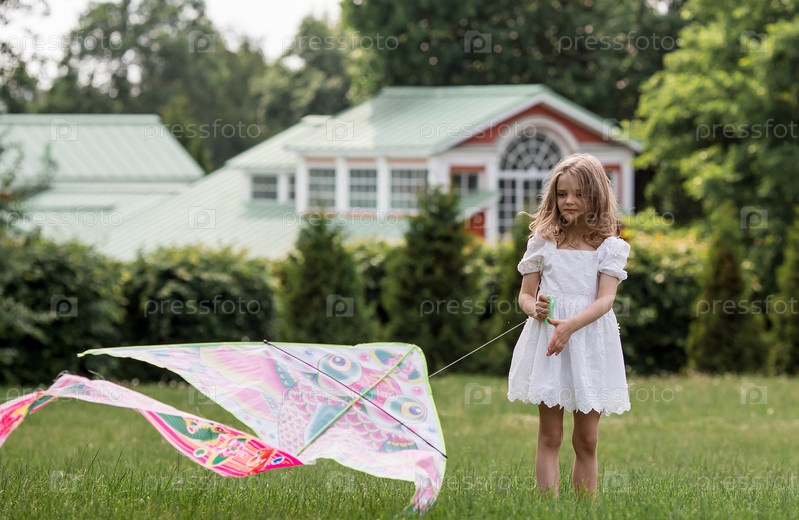 Дети в летнем парке. Красивая девушка летает на воздушном змее. Теплые семейные моменты или концептуальный образ для проведения времени на открытом воздухе