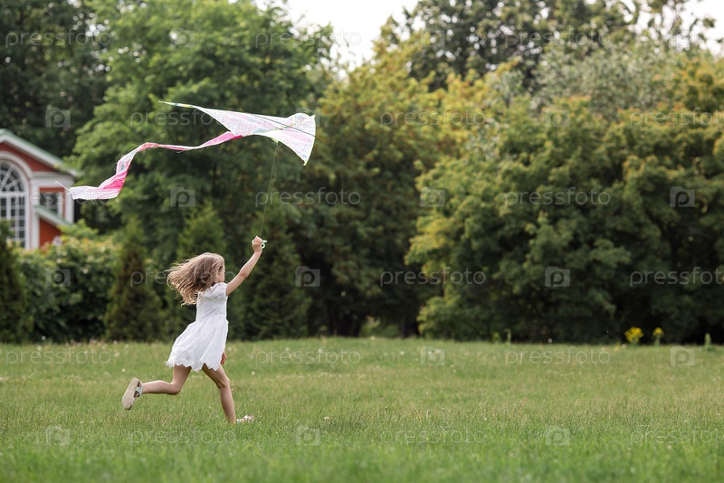 Дети в летнем парке. Красивая девушка летает на воздушном змее. Теплые семейные моменты или концептуальный образ для проведения времени на открытом воздухе