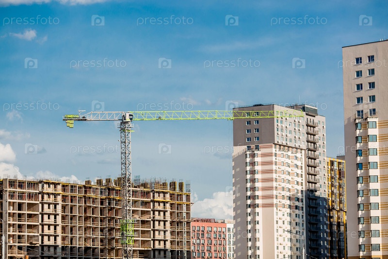 Современные высотные многоквартирные дома в солнечный день. Строительство новых жилых районов. Новые здания. Видное, Ленинский район, Московская область