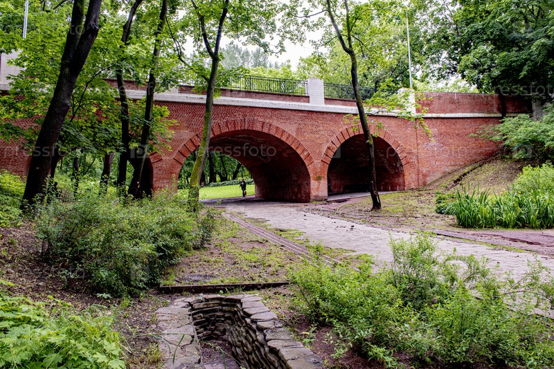 Нескучный сад. Старинный кирпичный, мост. Москва