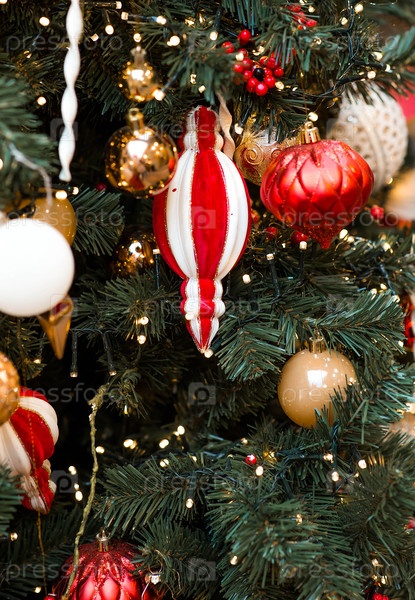 Новогодняя открытка 2026. Прекрасный рождественский фон. Праздничные игрушки на елке в Москве. Концепция подготовки декораций и декораций к новому году