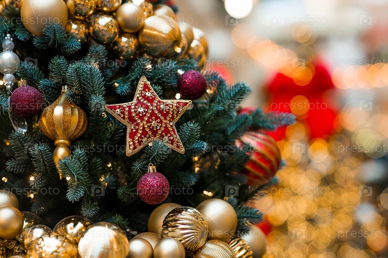 Новогодняя открытка 2026. Прекрасный рождественский фон. Праздничные игрушки на елке в Москве. Концепция подготовки декораций и декораций к новому году