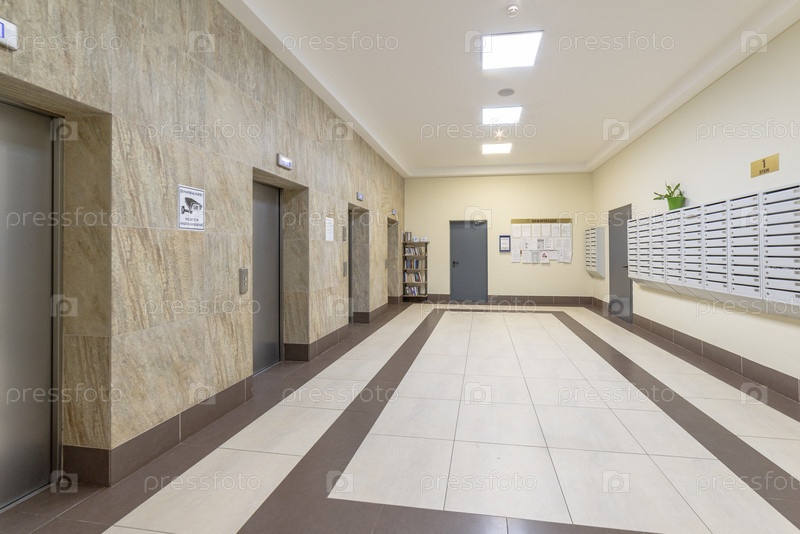 Подъезд жилого дома с широкой лесницей