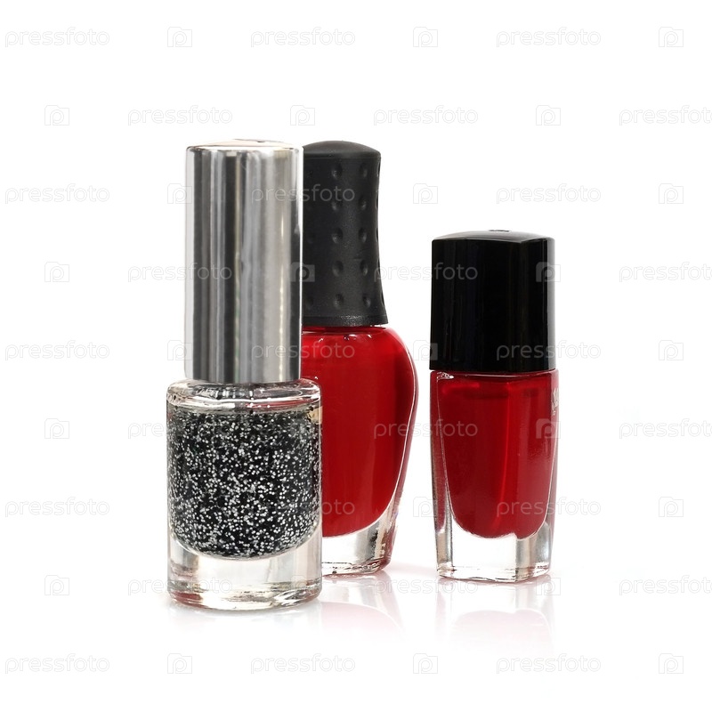 Мокап: бутылки для полировки ногтей изолированы на белом фоне