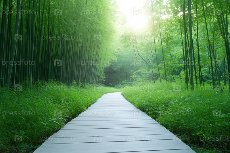 Бамбуковый лес в китае, бамбуковая роща с дорожкой