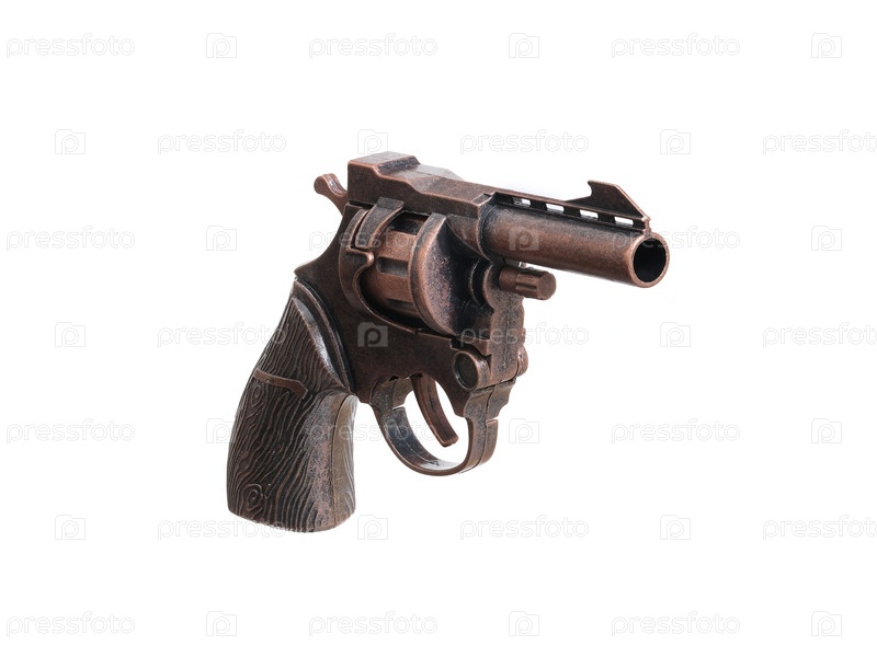 Детский игрушечный револьвер изолирован на белом фоне