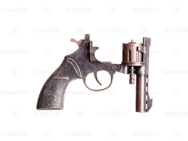 Детский игрушечный револьвер изолирован на белом фоне