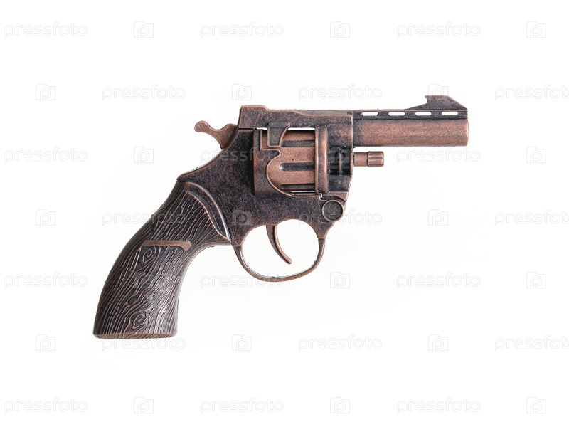 Детский игрушечный револьвер изолирован на белом фоне
