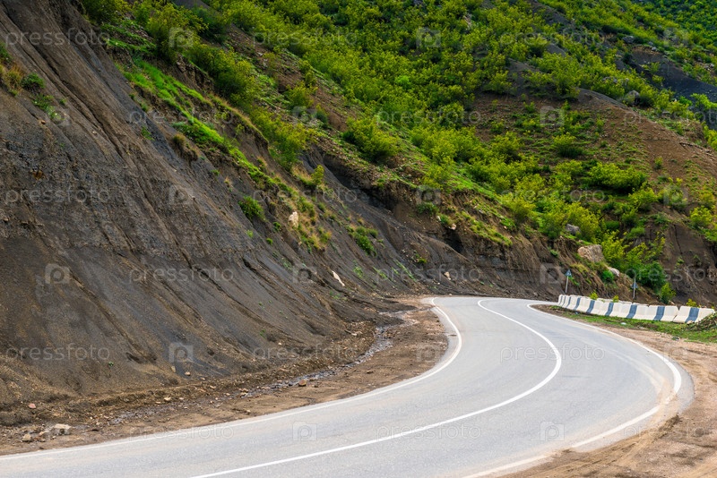 Извилистая асфальтовая дорога в горах Северного Кавказа Дагестана. Россия