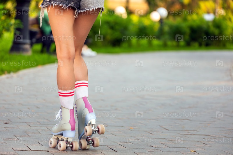 Ноги молодой женщины на роликовых коньках в парке