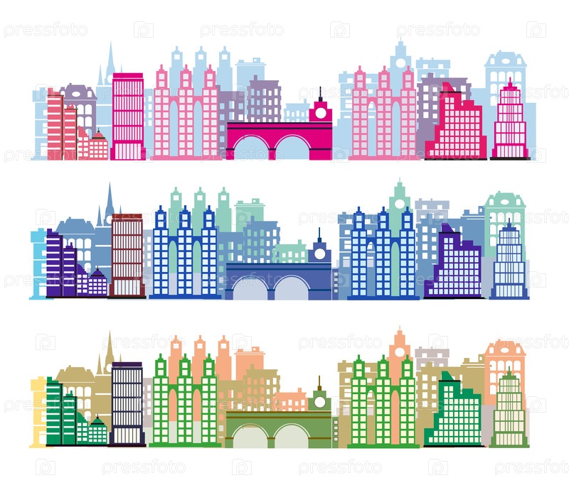 Силуэт городского пейзажа с небоскребами и городскими зданиями