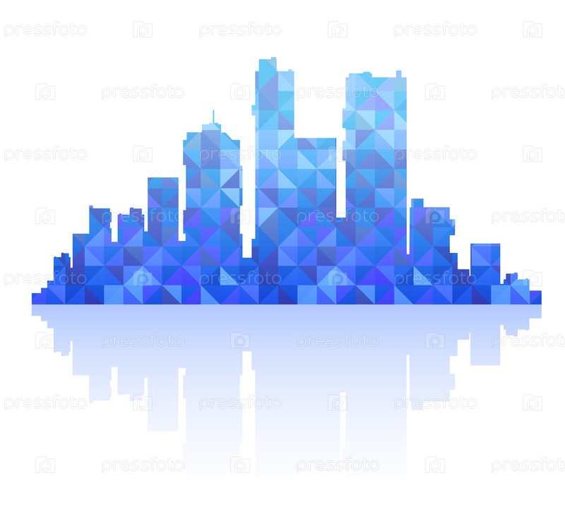 Силуэт городского пейзажа с небоскребами и городскими зданиями