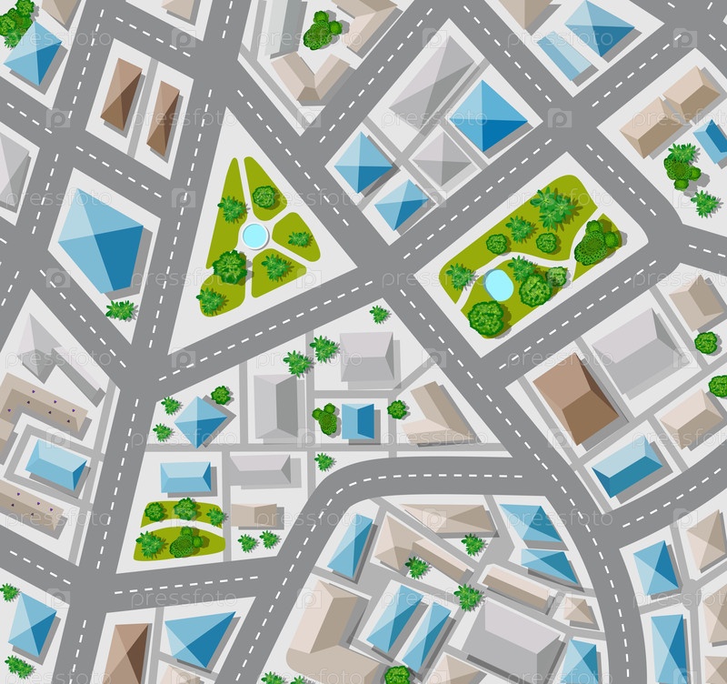 Планировать вид сверху на большой город с улицы