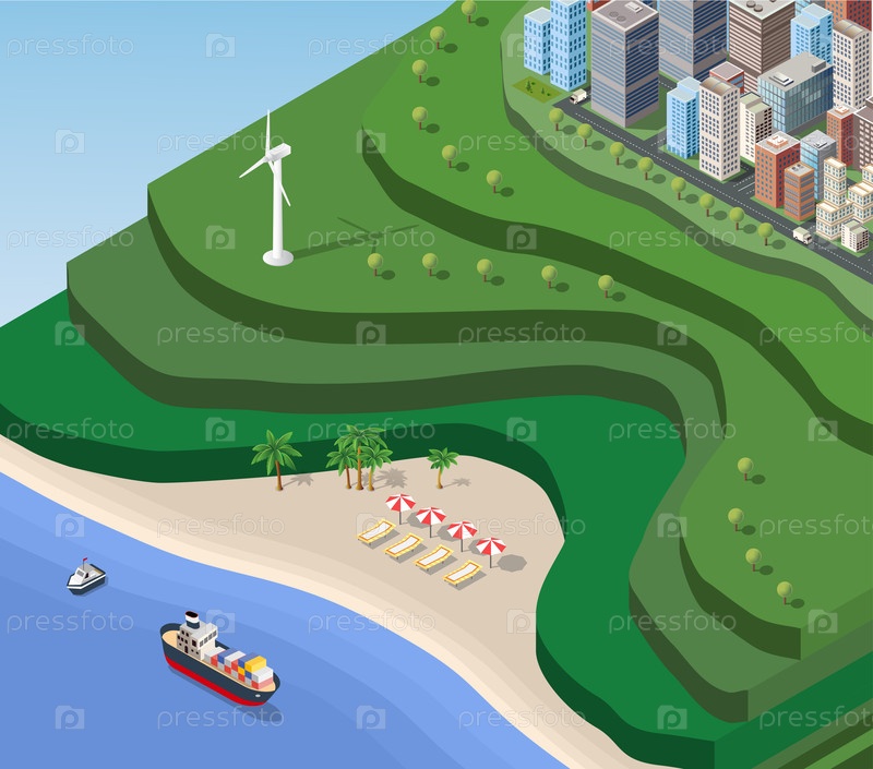 Морской пляж изометрический
