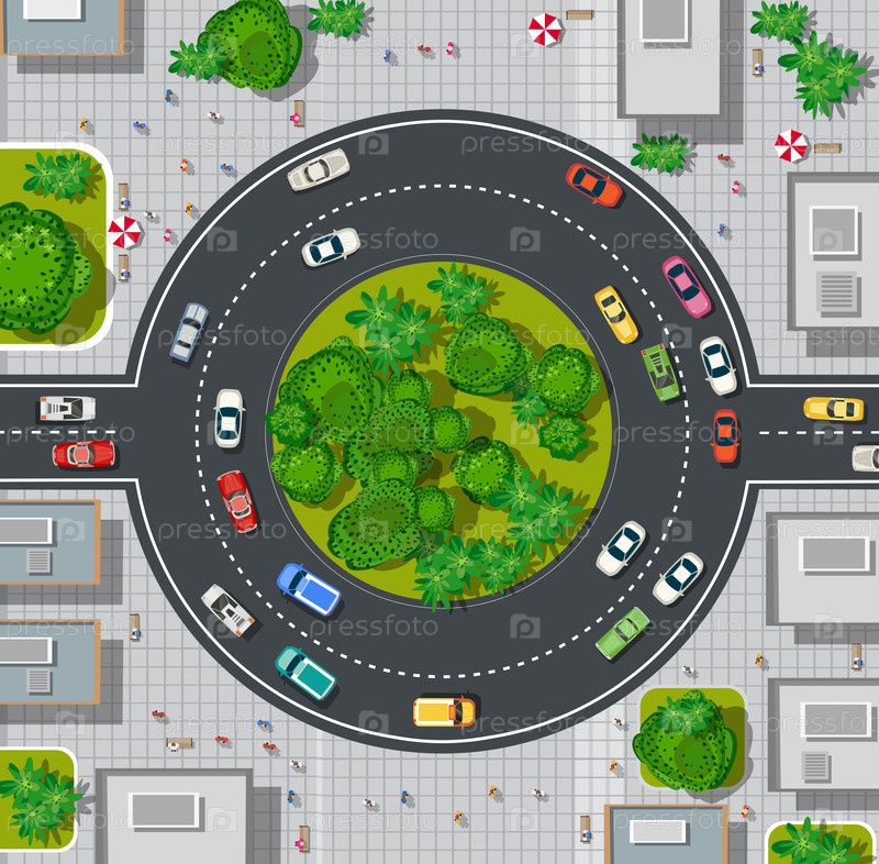 Вид на вершину дороги с автомагистралями много разных транспортных средств