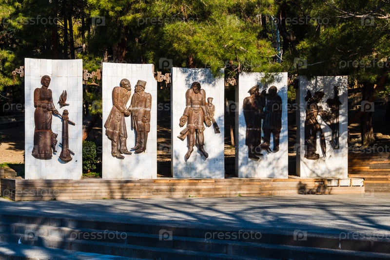 Городской пейзаж. Скульптурно-барельефная композиция "Чехов и его герои". Ялта. Крым