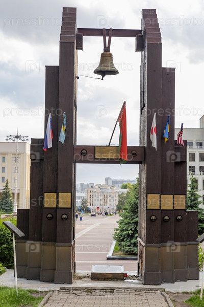 Беларусь. Минск. Памятник колокольни Нагасаки на площади Независимости. Белоруссия. Минск. Монумент Колокола Нагасаки на площади Независимости