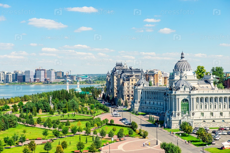 Живописный вид на Дворец фермеров из Казанского Кремля. Россия