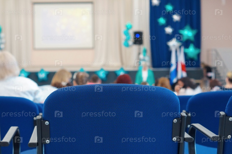 Акцент на спинке синего кресла в торжественном зале