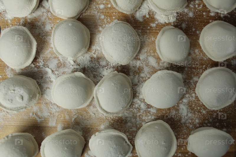 Закрытие круглых пельменей. Домашние пельмени готовят. Семейные традиции. Пищевой фон