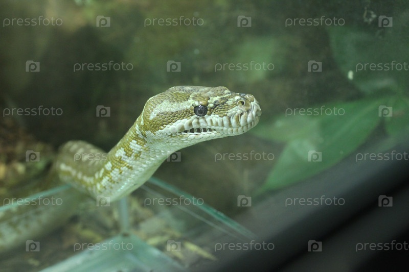 Маленький полосатый питон крупным планом. Портрет змеи
