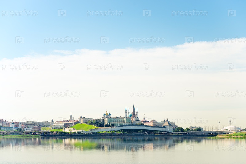 Живописный вид на Казанский Кремль и реку Казанку. Россия