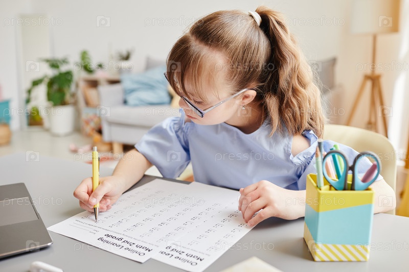 Девочка с синдромом Дауна изучает
