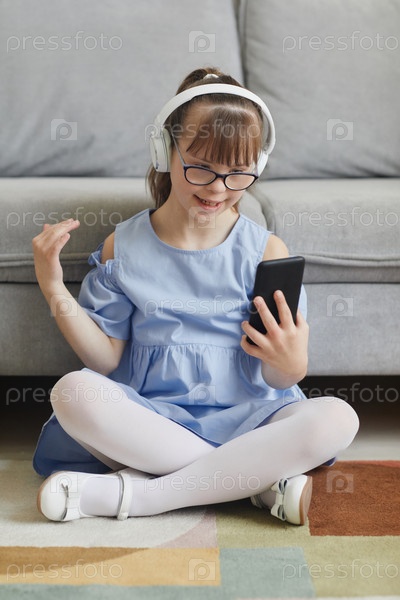 Девушка-подросток с синдромом Дауна использует видеочат