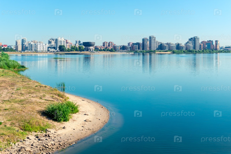 Берег реки Казанка с прекрасным видом на Казань и здание-символ города в виде котла