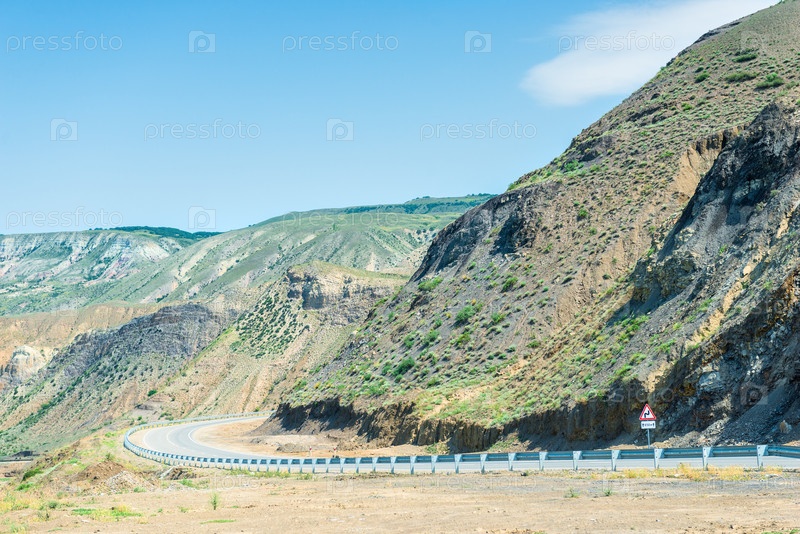 Извилистая асфальтированная дорога в горах Северного Кавказа Дагестана.Россия