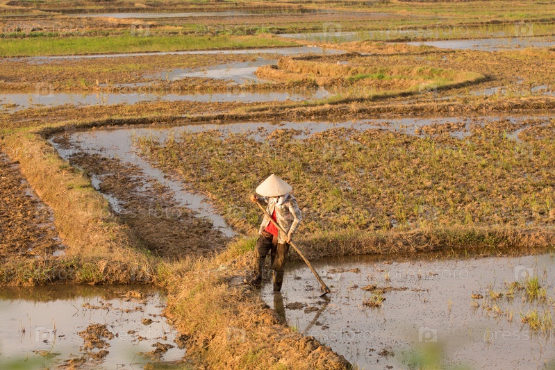 Вьетнамцы сажают рис на рисовом поле