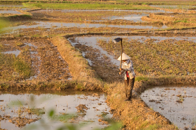 Вьетнамцы сажают рис на рисовом поле
