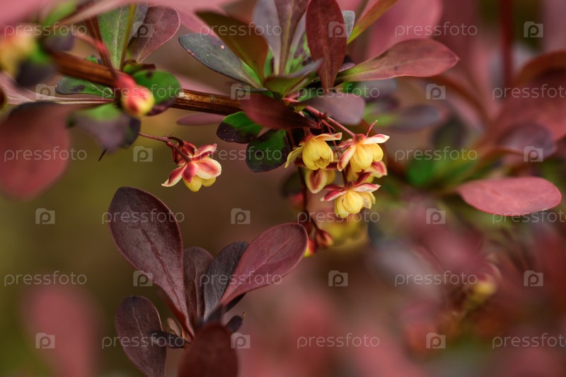 Кустарник Барбарис цветет в Саду