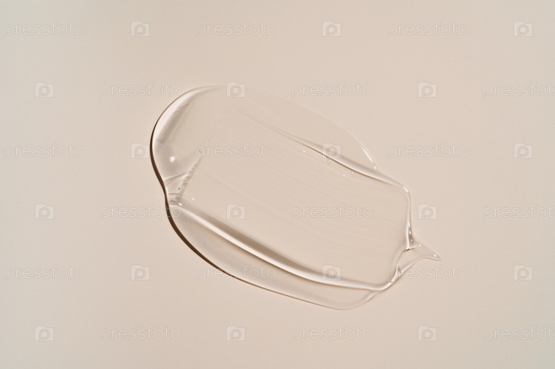Бежевый жидкий косметический гель или макияж из сыворотки с глянцевой, блестящей текстурой на гладном бежевом фоне
