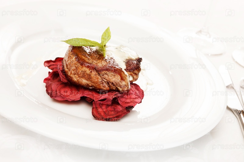 Стейк на свекольных чипсах