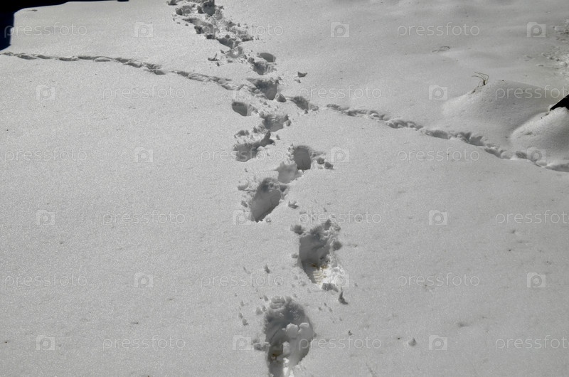 Снегопад в мае, следы ног на снегу