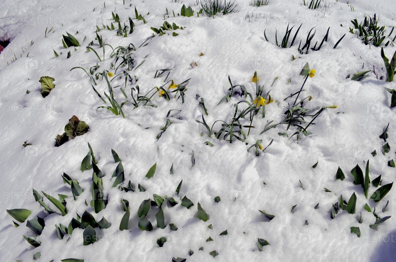 Снегопад в мае: нарциссы на снегу