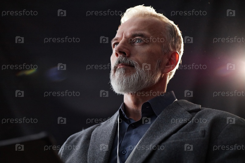 Человек с седыми волосами посещает бизнес-конференцию в старшей аудитории