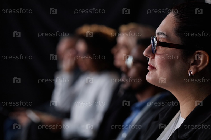 Женщина-финансовый руководитель с очками посещает саммит в конференц-зале